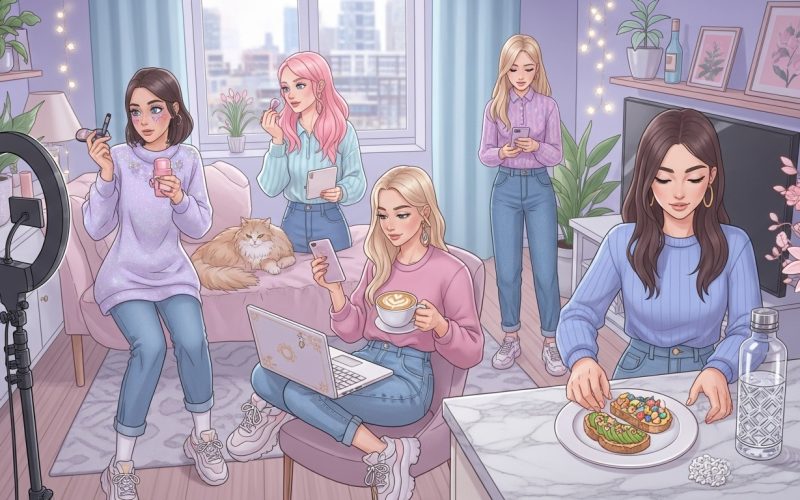 The aesthetic dream doesn’t stop with personal looks it extends into their surroundings. Many Internet Chicks share glimpses of their homes, studios, or workspaces that reflect their aesthetic identity. Neatly arranged books, indoor plants, soft lighting, and calming color palettes — every detail adds to the charm.